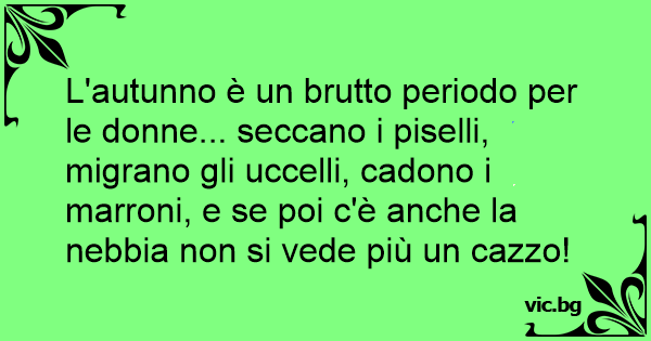 L'autunno è un brutto periodo per le donne... seccano i piselli, migrano gli uccelli, cadono i marroni, e se poi c'è anche la nebbia non si vede più un саzzо!
