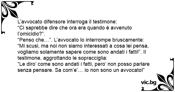 “Mi scusi, ma noi non siamo interessati a cosa lei pensa, vogliamo solamente sapere come sono andati i fatti!”. Il testimone, aggrottando le sopracciglia: