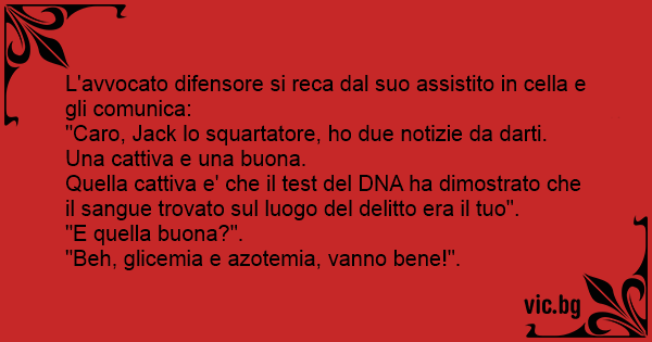 L'avvocato difensore si reca dal suo assistito in cella e gli comunica: