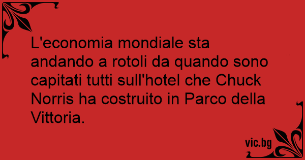 L'economia mondiale sta andando a rotoli da quando sono capitati tutti sull'hotel che Chuck Norris ha costruito in Parco della Vittoria.