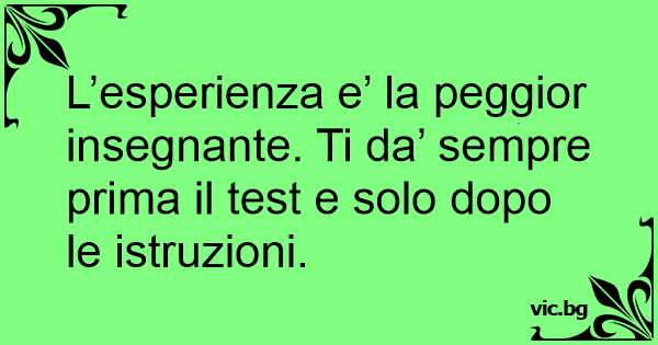 L’esperienza e’ la peggior insegnante. Ti da’ sempre prima il test e solo dopo le istruzioni.