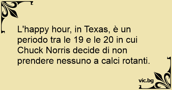 L'happy hour, in Texas, è un periodo tra le 19 e le 20 in cui Chuck Norris decide di non prendere nessuno a calci rotanti.