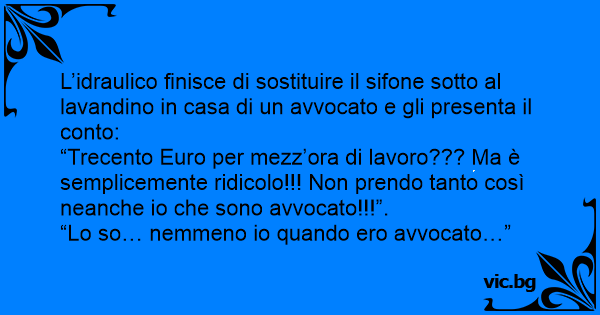 L’idraulico finisce di sostituire il sifone sotto al lavandino in casa di un avvocato e gli presenta il conto: