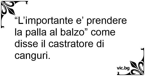 “L’importante e’ prendere la palla al balzo” come disse il castratore di canguri.