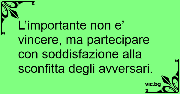 L’importante non e’ vincere, ma partecipare соn soddisfazione alla sconfitta degli avversari.