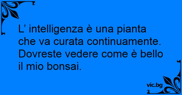 L’ intelligenza è una pianta che va curata continuamente. Dovreste vedere come è bello il mio bonsai.