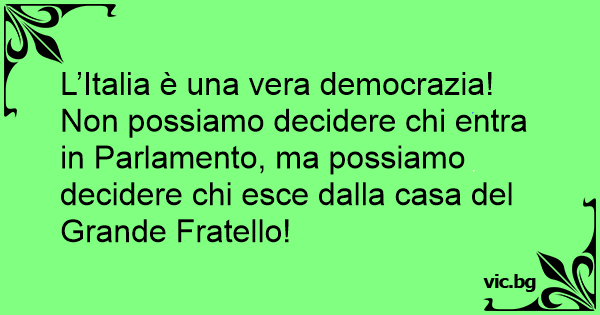 L’Italia è una vera democrazia! Non possiamo decidere chi entra in Parlamento, ma possiamo decidere chi esce dalla casa del Grande Fratello!