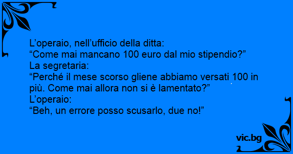 “Perché il mese scorso gliene abbiamo versati 100 in più. Come mai allora non si è lamentato?”