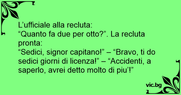 “Sedici, signor capitano!” – “Bravo, ti do sedici giorni di licenza!” – “Ассidеnтi, a saperlo, avrei detto molto di piu’!”