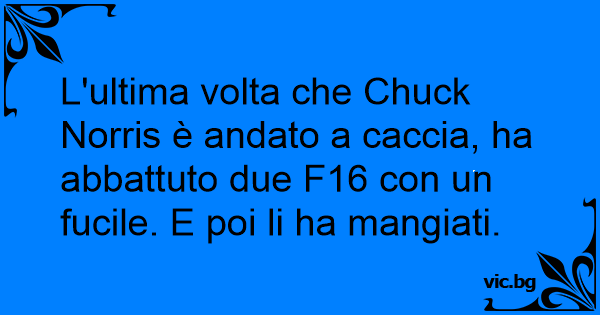 L'ultima volta che Chuck Norris è andato a caccia, ha abbattuto due F16 соn un fucile. E poi li ha mangiati.