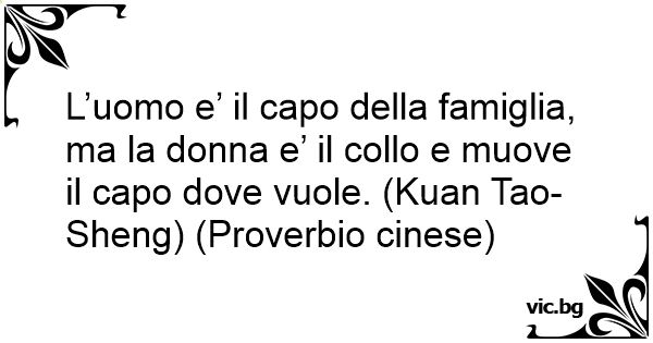 L’uomo e’ il capo della famiglia, ma la donna e’ il collo e muove il capo dove vuole. (Kuan Tao-Sheng) (Proverbio cinese)