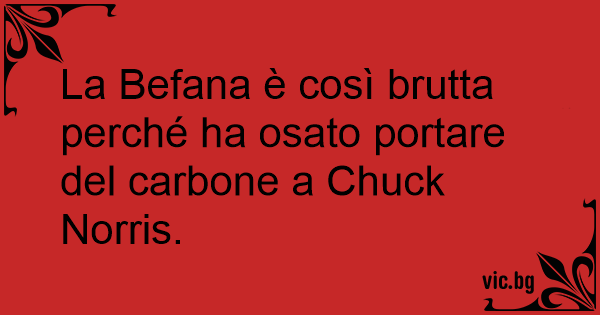 La Befana è così brutta perché ha osato portare del carbone a Chuck Norris.