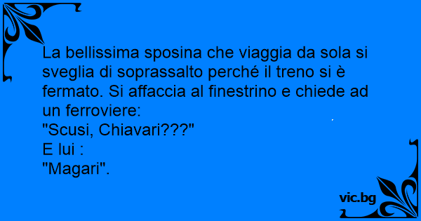 La bellissima sposina che viaggia da sola si sveglia di soprassalto perché il treno si è fermato. Si affaccia al finestrino e chiede ad un ferroviere: