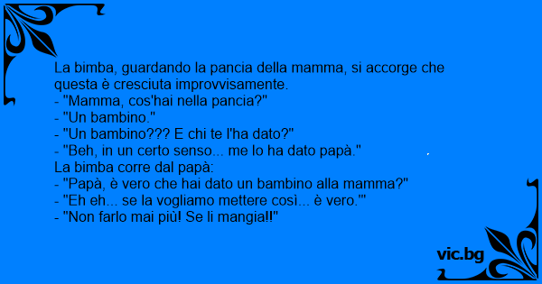 - "Papà, è vero che hai dato un bambino alla mamma?"