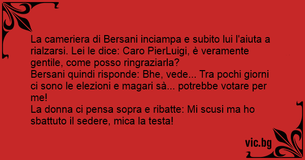 Bersani quindi risponde: Bhe, vede... Tra pochi giorni ci sono le elezioni e magari sà... potrebbe votare per me!