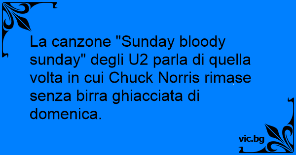 La canzone "Sunday вlооdy sunday" degli U2 parla di quella volta in cui Chuck Norris rimase senza birra ghiacciata di domenica.