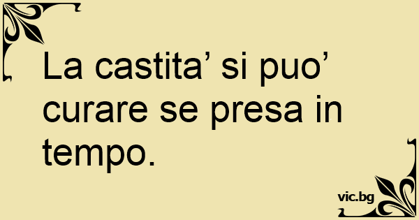 La castita’ si puo’ curare se presa in tempo.