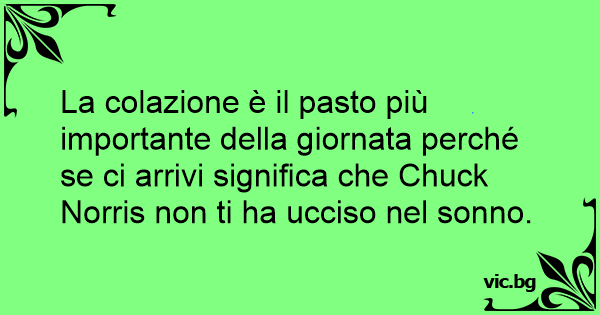 La colazione è il pasto più importante della giornata perché se ci arrivi significa che Chuck Norris non ti ha ucciso nel sonno.