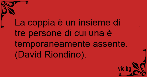 La coppia è un insieme di tre persone di cui una è temporaneamente assente. (David Riondino).