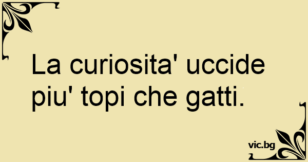 La curiosita' uccide piu' topi che gatti.