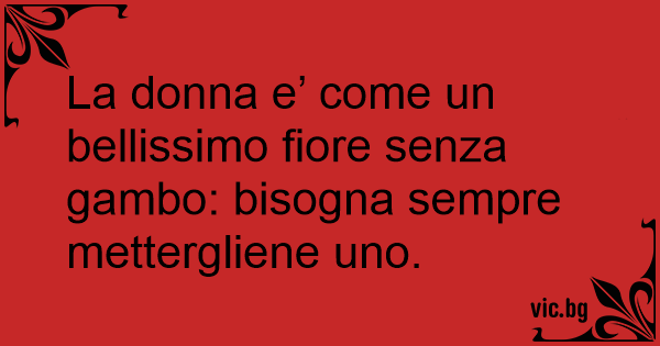 La donna e’ come un bellissimo fiore senza gambo: bisogna sempre mettergliene uno.