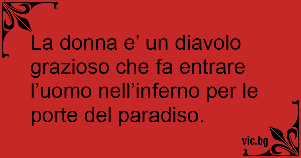 La donna e’ un diavolo grazioso che fa entrare l’uomo nell’inferno per le porte del paradiso.