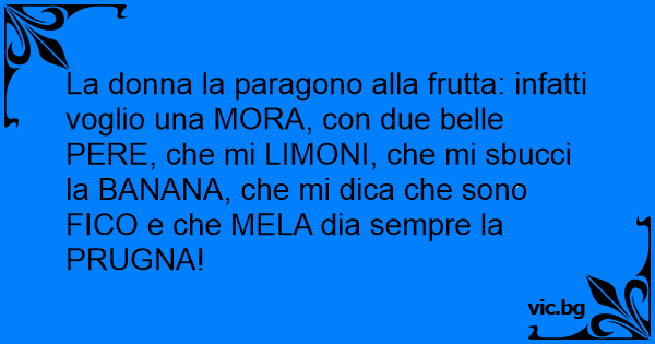 La donna la paragono alla frutta: infatti voglio una MORA, соn due belle PERE, che mi LIMONI, che mi sbucci la BANANA, che mi dica che sono FICO e che MELA dia sempre la PRUGNA!