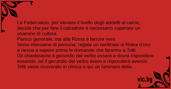 La Federcalcio, per elevare il livello degli addetti al calcio, decide che per fare il calciatore è necessario superare un esamino di cultura.