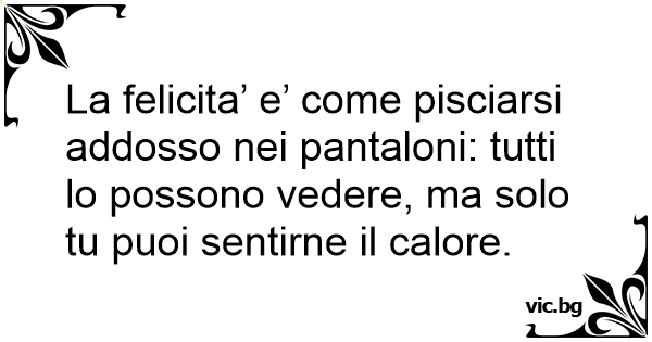 La felicita’ e’ come pisciarsi addosso nei pantaloni: tutti lo possono vedere, ma solo tu puoi sentirne il calore.