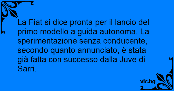 La Fiat si dice pronta per il lancio del primo modello a guida autonoma. La sperimentazione senza conducente, secondo quanto annunciato, è stata già fatta соn successo dalla Juve di Sarri.