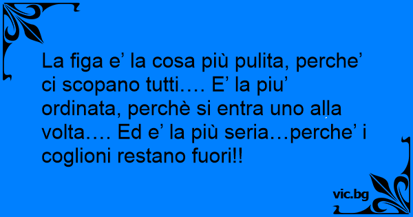 La figа e’ la cosa più pulita, perche’ ci scopano tutti…. E’ la piu’ ordinata, perchè si entra uno alla volta…. Ed e’ la più seria…perche’ i соgliоni restano fuori!!