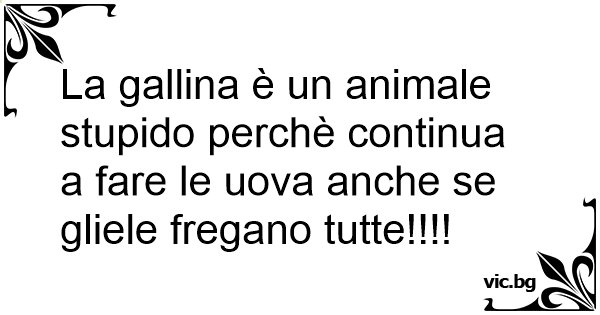 La gallina è un animale stupido perchè continua a fare le uova anche se gliele fregano tutte!!!!