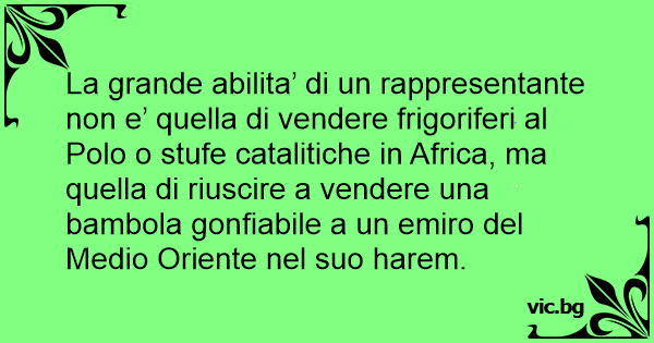 La grande abilita’ di un rappresentante non e’ quella di vendere frigoriferi al Polo o stufe catalitiche in Africa, ma quella di riuscire a vendere una bambola gonfiabile a un emiro del Medio Oriente nel suo harem.