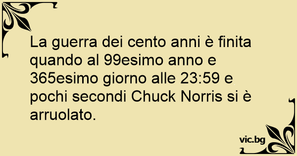 La guerra dei cento anni è finita quando al 99esimo anno e 365esimo giorno alle 23:59 e pochi secondi Chuck Norris si è arruolato.