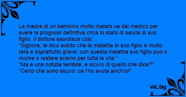 La madre di un bambino molto malato va dal medico per avere la prognosi definitiva circa lo stato di salute di suo figlio. Il dottore esordisce così: