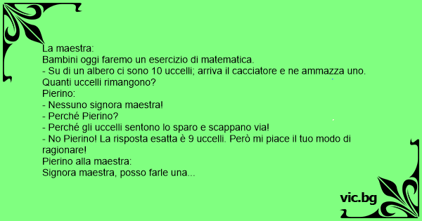 - No Pierino! La risposta esatta è 9 uccelli. Però mi piace il tuo modo di ragionare!