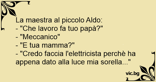 - "Credo faccia l'elettricista perchè ha appena dato alla luce mia sorella..."