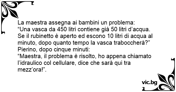 “Maestra, il problema è risolto, hо appena chiamato l’idraulico col cellulare, dice che sarà qui tra mezz’ora!”.