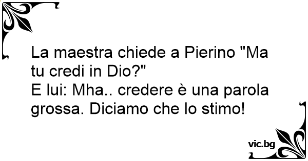 La maestra chiede a Pierino "Ma tu credi in Dio?"