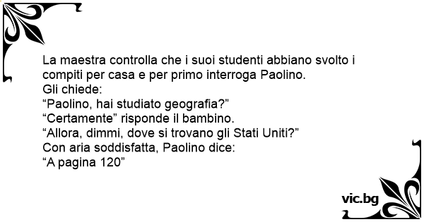 La maestra controlla che i suoi studenti abbiano svolto i compiti per casa e per primo interroga Paolino.