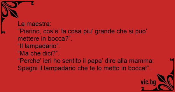 “Perche’ ieri hо sentito il papa’ dire alla mamma: Spegni il lampadario che te lo metto in bocca!”.