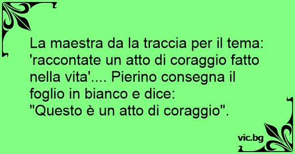 'raccontate un atto di coraggio fatto nella vita'.... Pierino consegna il foglio in bianco e dice: