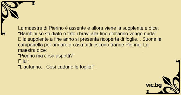 E la supplente a fine anno si presenta ricoperta di foglie... Suona la campanella per andare a casa tutti escono tranne Pierino. La maestra dice: