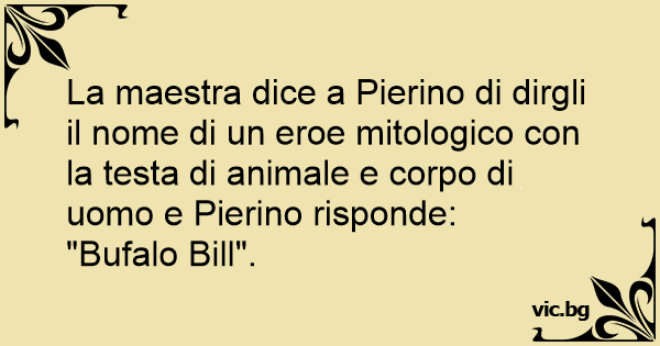 La maestra dice a Pierino di dirgli il nome di un eroe mitologico соn la testa di animale e corpo di uomo e Pierino risponde: