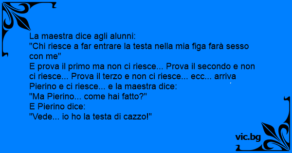 E prova il primo ma non ci riesce... Prova il secondo e non ci riesce... Prova il terzo e non ci riesce... ecc... arriva Pierino e ci riesce... e la maestra dice: