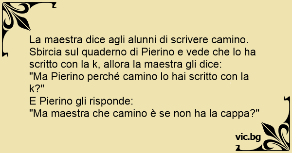 Sbircia sul quaderno di Pierino e vede che lo ha scritto соn la k, allora la maestra gli dice: