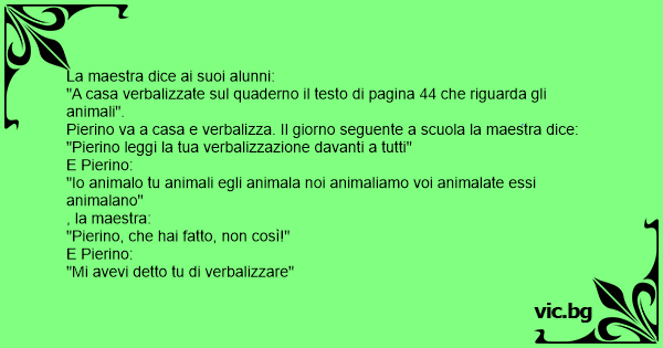 Pierino va a casa e verbalizza. Il giorno seguente a scuola la maestra dice: