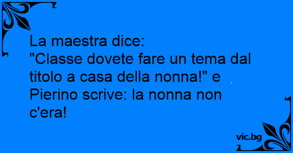 "Classe dovete fare un tema dal titolo a casa della nonna!" e