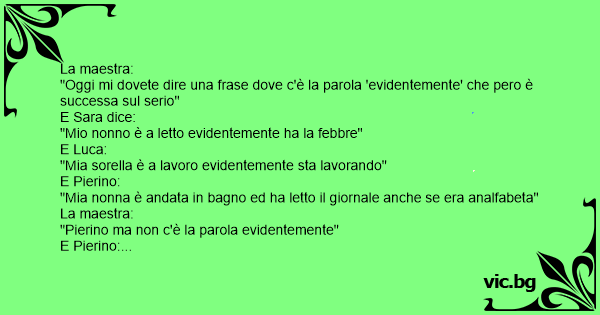 "Oggi mi dovete dire una frase dove c'è la parola 'evidentemente' che pero è successa sul serio"