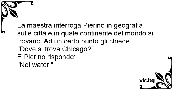 La maestra interroga Pierino in geografia sulle città e in quale continente del mondo si trovano. Ad un certo punto gli chiede: